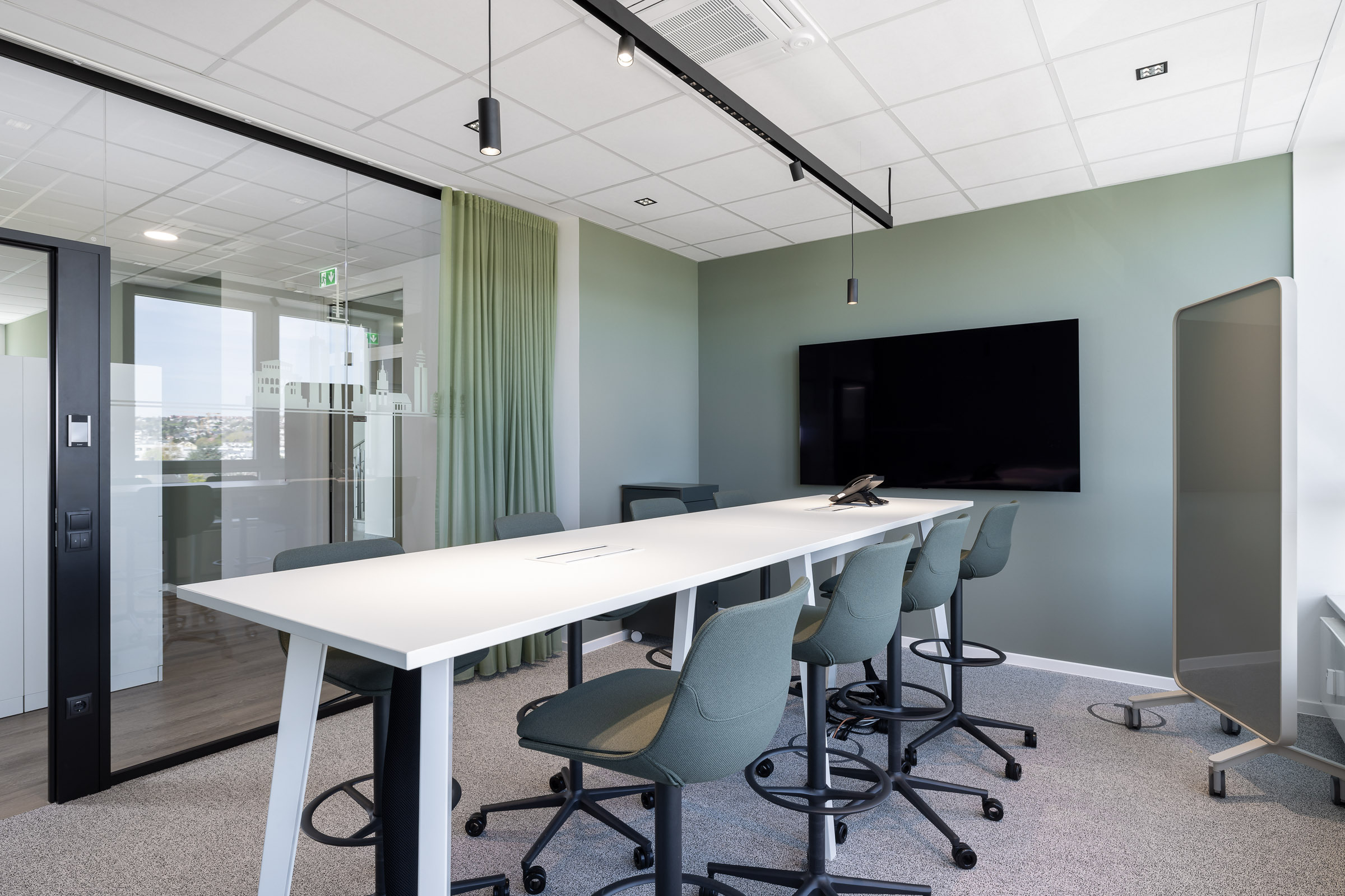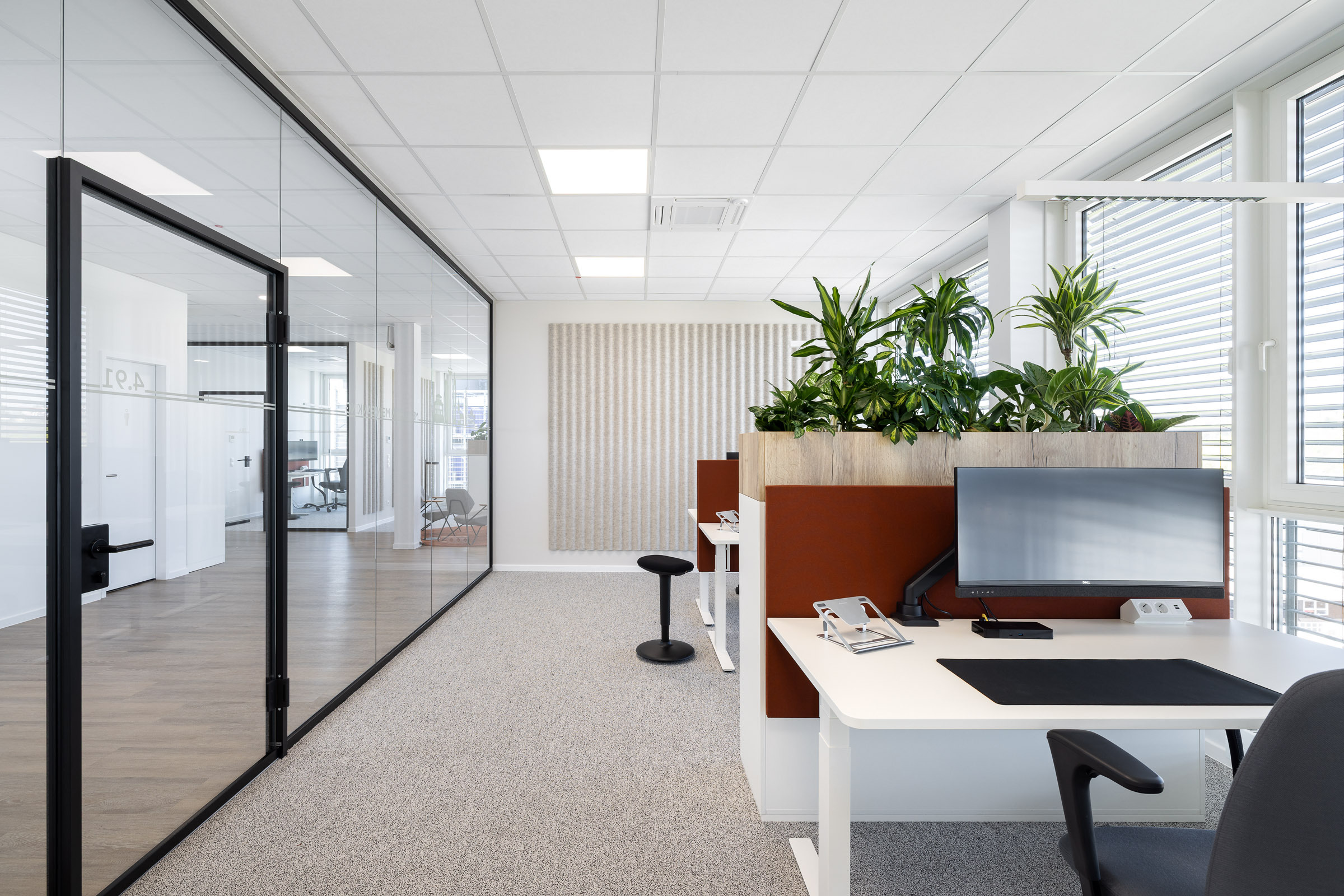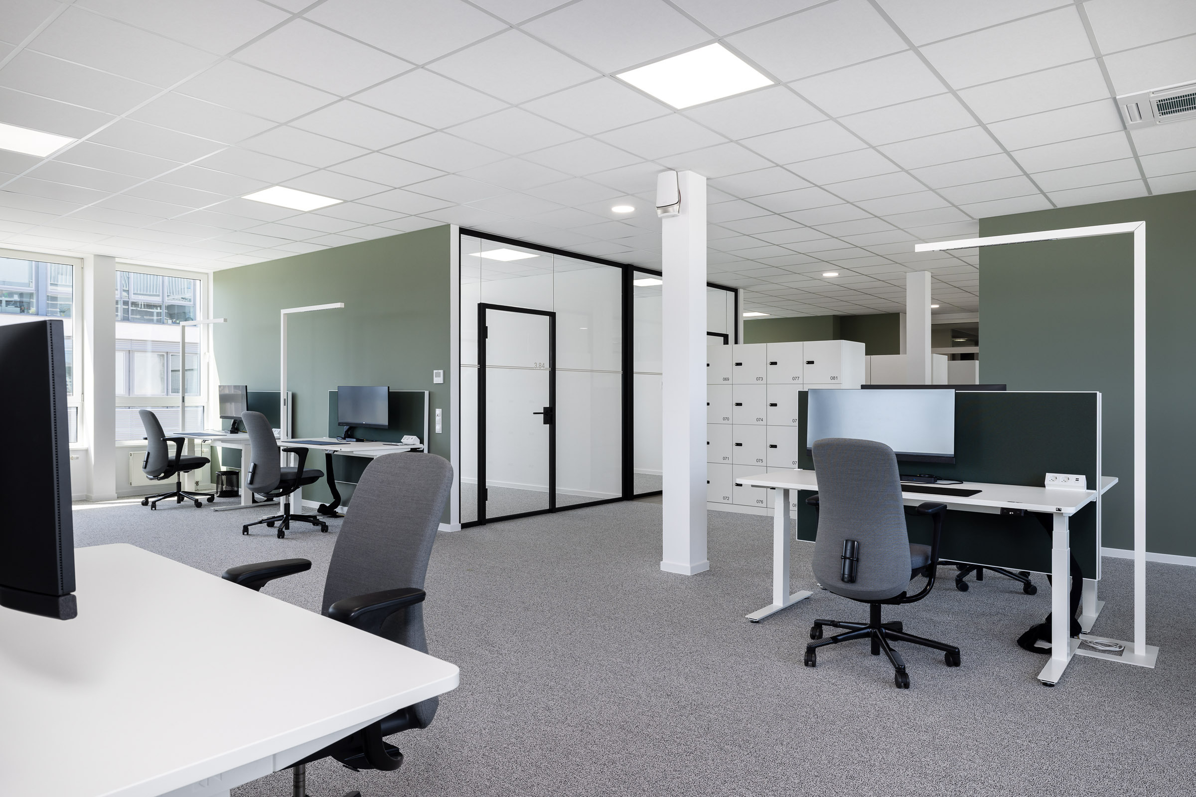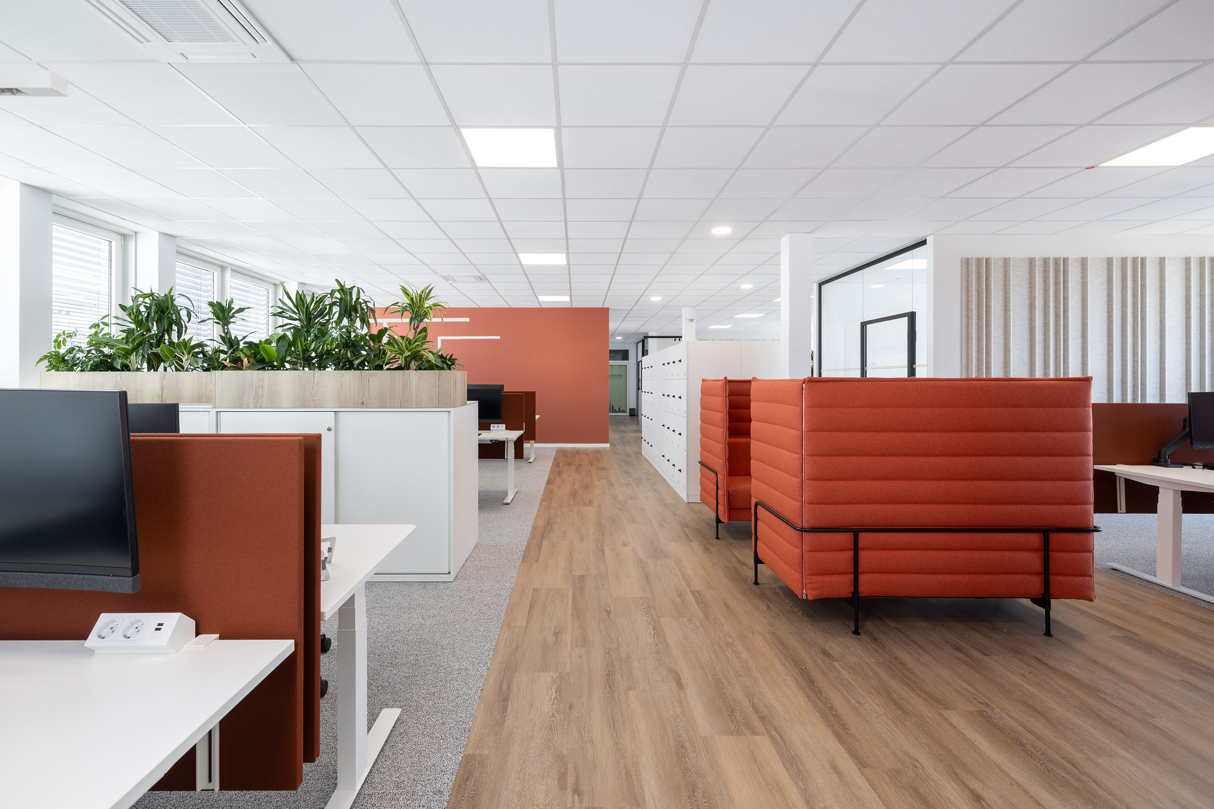 Dank der kooperativen Zusammenarbeit mit dem Gebäudeeigentümer konnten umfangreiche Veränderungen realisiert werden. Die Einführung von Desksharing ermöglichte eine kompakte, effektive Flächennutzung. Gleichzeitig entstanden neue Sozial- und Aufenthaltsbereiche sowie modern ausgestattete Meetingräume. Abgerundet wird das Raumkonzept durch eine klare, zeitgemässe Designsprache und ein energieoptimiertes Beleuchtungskonzept. Entstanden ist so eine Fläche, die nicht nur moderne Arbeitsplätze für die 150 Mitarbeitenden bietet, sondern eine Umgebung, die Offenheit, Flexibilität und Identität gleichermassen fördert.
